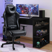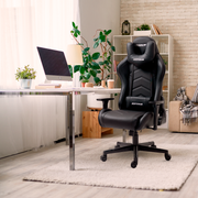 Der Gaming-Stuhl bietet Komfort und Funktionalität für lange Gaming-Sessions. Sein ergonomisches Design mit gepolsterter Kopfstütze, stabilen Konturen und sportlicher Optik ermöglicht schnelle Bewegungen in verschiedenen Spielen