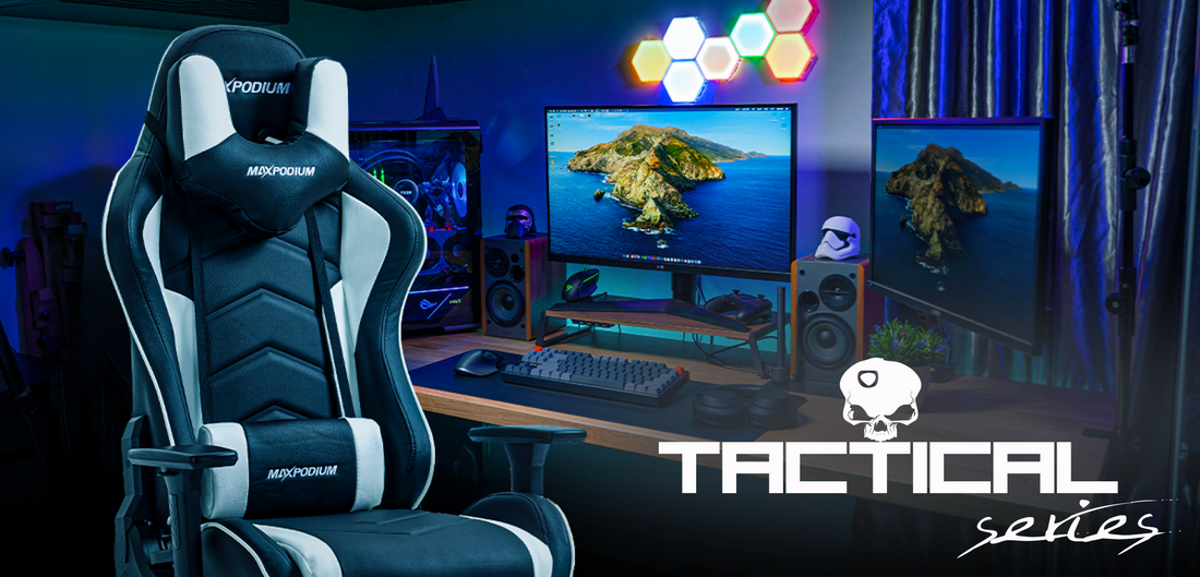 Der MaxPodium Tactical Gaming Stuhl hat ein modernes Design, das in Videostreams großartig aussieht und Ihrem Setup eine stilvolle Note verleiht. Erleben Sie erstklassige Leistung mit dem MaxPodium PC Stuhl, der mit fortschrittlicher Ergonomie gebaut wurde, um Muskelermüdung zu minimieren. So können Sie bequem arbeiten oder spielen.